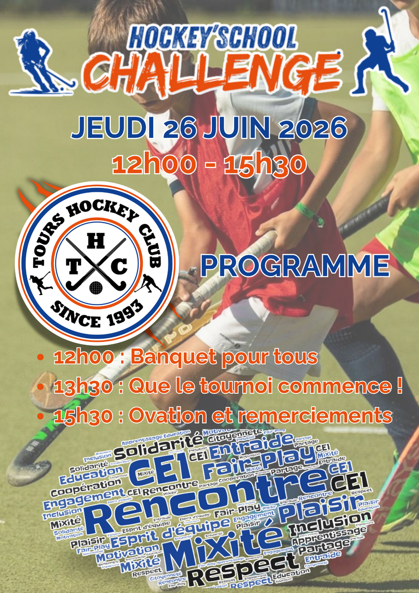 Le Tours Hockey Club lance la toute première édition du Hockey’School Challenge, un événement scolaire inédit dédié à la découverte du hockey sur gazon ! Pensé pour les élèves de CE1, ce tournoi vise à allier sport, apprentissage et plaisir du jeu dans un cadre sécurisé et convivial.