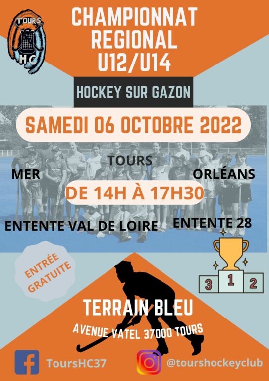 Samedi 08 octobre 2022, retrouver l'équipe régionale U12/U14 du Tours Hockey Club à la 1ère journée du championnat régional U12/U14 à Tours (Terrain bleu, Avenue Vatel 37000 TOURS).